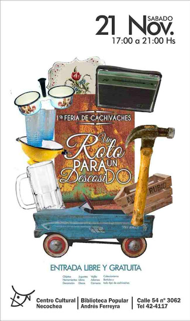 El próximo sábado en el Salón Auditorio, a partir de las 17hs. y hasta las 21hs, se desarrollará la primera feria de objetos usados del Centro Cultural: UN ROTO PARA UN DESCOSIDO, con entrada libre y gratuita.