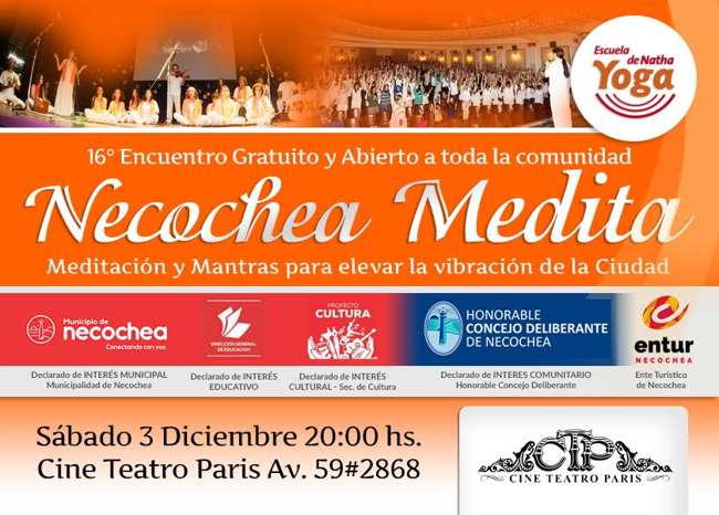 Una vez más y como hace 16 años, la Escuela de Natha Yoga invita a toda la Comunidad de Necochea y la zona, a compartir el evento anual de Meditación «Necochea Medita», un encuentro abierto y gratuito para toda la familia, que tiene por objetivo elevar la vibración de nuestra Ciudad y meditar por la Paz mundial.
