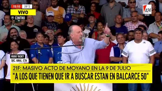 El secretario general de la Central de Trabajadores de la Argentina (CTA), Hugo Yasky, fue el anteúltimo orador del acto que culminó con la marcha que encabezó el camionero Hugo Moyano y que tuvo un fuerte tono crítico hacia el gobierno nacional.