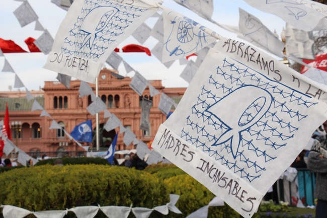 Desde temprano militantes y ciudadanos de a pie acompañados por sus familias, fueron acercándose a la mítica plaza para mostrar su apoyo a la lucha ininterrumpida de las Madres de Plaza de Mayo y a Hebe de Bonafini por su entereza a pesar del ataque judicial que hay en su contra.