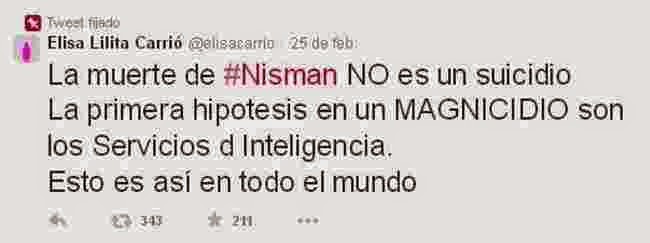 Estos nuevos datos no confirmados oficialmente parecen haber sido suficientes para que Arroyo Salgado afirmara categóricamente que la muerte de Nisman fue un «homicidio».