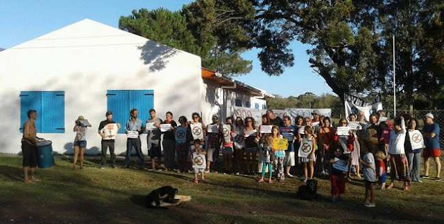 Entre las acciones que se llevan a cabo para lograr los mil metros libres de fumigación, la agrupación socioambiental que lleva este nombre, junto a docentes y vecinos de la zona, participó de un “Abrazo a la escuela N° 47, Almafuerte” víctima constante de fumigaciones aéreas y terrestres.