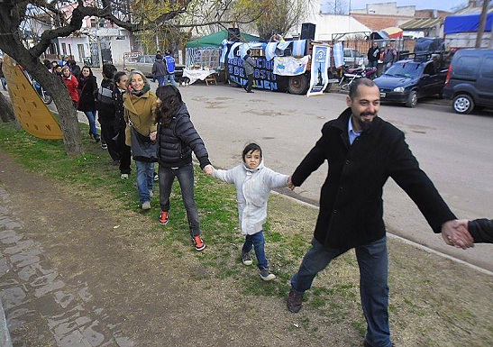 El precandidato a concejal por el Frente Social en el Frente para la Victoria, Luciano Cardoni, junto a los precandidatos Mara Perez, Rodolfo Pinzone, Alejandro Jacin y Armando Muñoz estuvieron acompañando a los vecinos de Quequén en su reclamo solidario por la vuelta de la maternidad al Hospital Irurzun de Quequén, médico para la ambulancia, guardia pediátrica nocturna y mejoras edilicias.