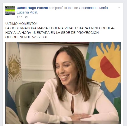 Vidal pasó por Quequén: “Necochea se merece mucho más” ► https://t.co/T8vq29rHpO ►►►►►— Cuatro Vientos (@Diario4V) 23 de julio de 2017