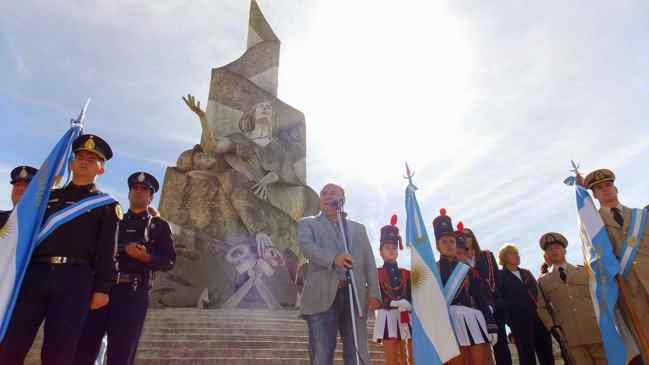Con el colorido y el marco tradicional de las banderas de ceremonia, el acto comenzó con la entonación de las estrofas del Himno Nacional Argentino, acompañado por la fina melodía de la Banda Municipal, y continuó con un sentido minuto de silencio para darle paso a la colocación de las ofrendas florales al pie del monumento.