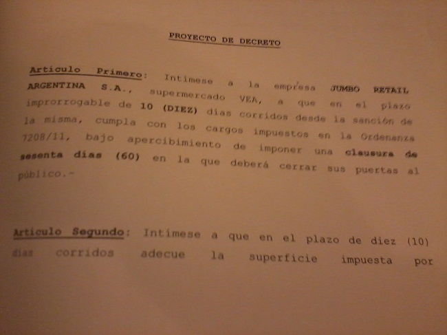 El proyecto presentado indica textualmente que de no cumplir la firma con la «ordenanza 7208/11, bajo apercibiemiento de imponer una clusura de sesenta días (60 días) en la que deberá cerrar sus puertas al público».