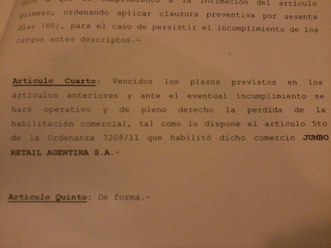El proyecto presentado indica textualmente que de no cumplir la firma con la «ordenanza 7208/11, bajo apercibiemiento de imponer una clusura de sesenta días (60 días) en la que deberá cerrar sus puertas al público».