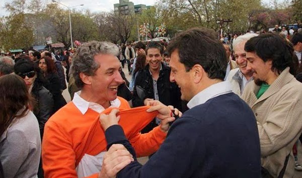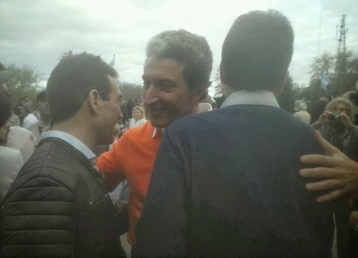 MASSA Y «PEPE» SCIOLI SE SALUDARON EFUSIVAMENTE EN MEDIO DE LA PLAZA DARDO ROCHA: «¿QUE HACES CON LA CAMISETA NARANJA DE TU HERMANO?»