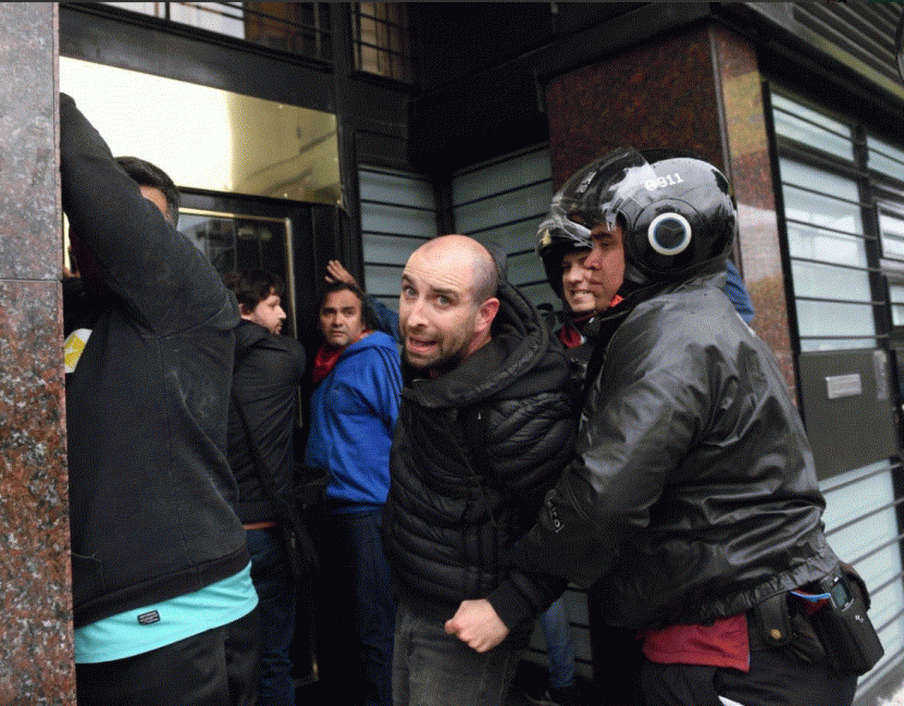 Denuncian hay tres heridos. Un periodista de Crónica sufrió un corte en la cabeza. Además, detuvieron a Nacho Levy y otros integrantes de La Garganta Poderosa, y a un camarógrafo de Agencia Télam, entre otros.
