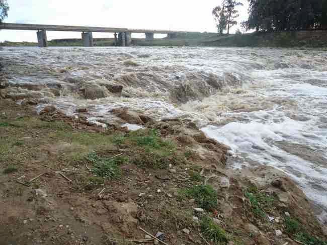 Ruta 88, con agua sobre el asfalto en km. 79, se deja pasar de un vehículo por vez, señalizada.
