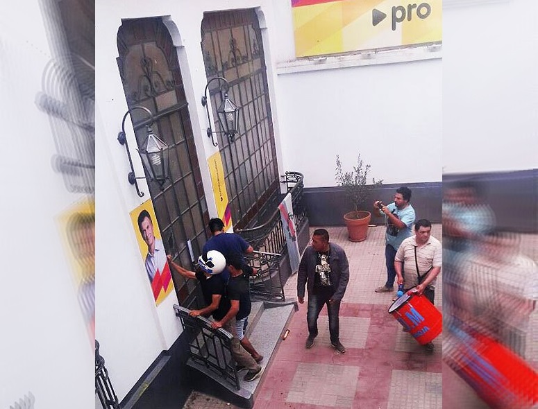 Desde la gremial se organizaron y convocaron a una marcha en la Plaza. Fueron a la Sede del PRO y provocaron destrozos. También desataron su furia en la sede de la UCR.