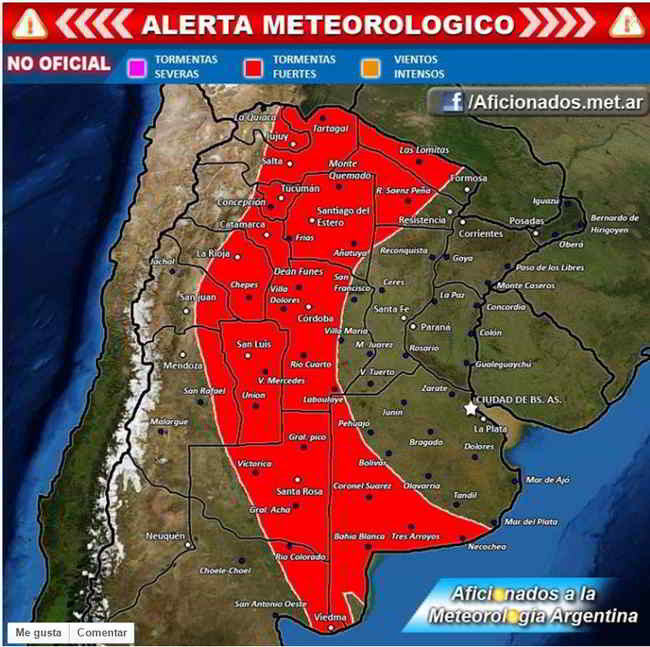 ALERTA METEOROLOGICO POR TORMENTAS LOCALMENTE FUERTES (NO OFICIAL)