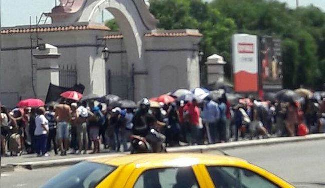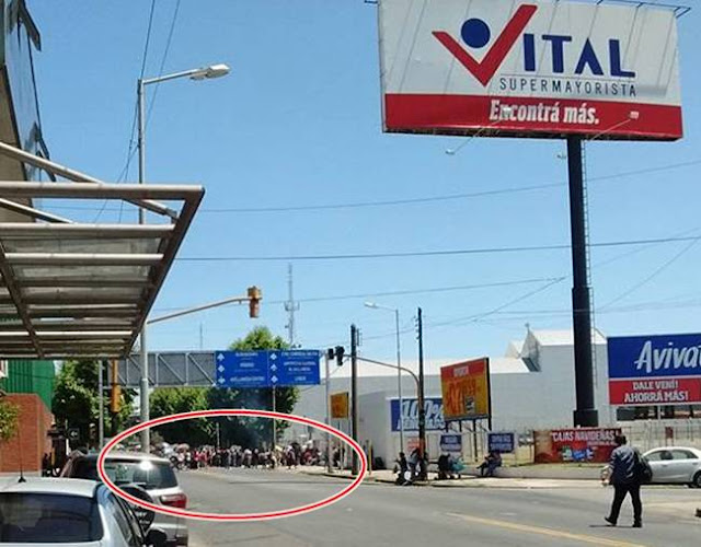 «Reclamo frente a Carrefour» es el epígrafe de otra de las imágenes. También se observa un numeroso grupo frente al hipermercado mayorista Vittal.