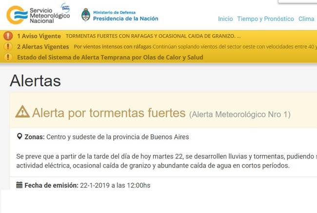 Zonas: Centro y sudeste de la provincia de Buenos Aires pic.twitter.com/JiNgsvE2qe— INFO EN PROCESO (@INFOENPROCESO) 22 de enero de 2019