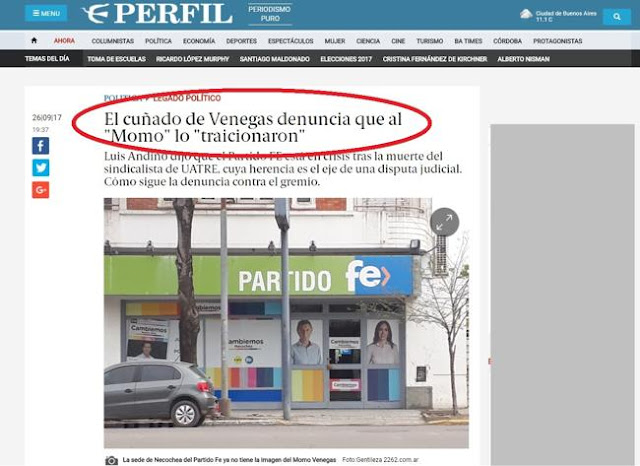 El cuñado de Venegas denuncia que al «Momo» lo «traicionaron» https://t.co/BVBHqdYCqx— Ramón Indart (@rindart) 26 de septiembre de 2017