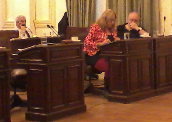 Fue por unos momentos y por un desperfecto técnico en el micrófono asignado a su banca, lo que la obligó a sentarse en una banca vacía del Frente para la Victoria. Ocurrió en la sesión del jueves 25/10/12 cuando quería fundamentar su apoyo al proyecto de moratoria que se aprobó en el Concejo Deliberante.