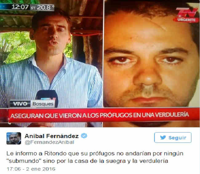 «Le informo que sus prófugos no andarían por ningún submundo sino por la casa de la suegra y la verdulería», le dijo Aníbal a Ritondo por Twitter.