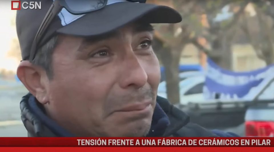 Una reconocida fábrica de cerámicos de Pilar despidió a más de 300 empleados y cerró sus portones con candado. Los trabajadores, que siguen sin cobrar, cortan la calle y reclaman: “33 años de servicio, ¿qué les digo yo a mis hijos?”, expresó con dolor un obrero ante las cámaras de C5N.