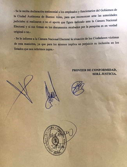 Rattoni, otra de las integrantes de la fundación, adelantó que pedirán a Casanello y a Stornelli “convocar como testigos a los funcionarios porteños y empleados. En esa figura no pueden mentir porque serían imputados por falsos testimonios. Todas las personas que pedimos sean convocadas deberán verificar su firma y el aporte que figura hoy en la Cámara Nacional Electoral”.