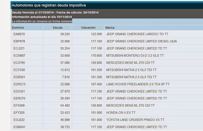La Agencia de Recaudación de la provincia de Buenos Aires (ARBA) da a conocer regularmente el estado fiscal de los vehículos radicados en el territorio. La información se renueva en forma semanal desde la página web de la entidad oficial y es de acceso público. Resulta llamativo cuando los datos remiten a automóviles de alta gama y gama media.