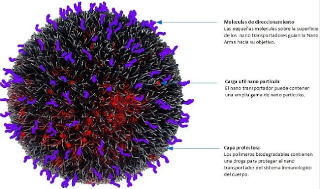 Según detalla el portal, la «nanoarma» fue desarrollada mediante «nanotransportadores o nanocápsulas con direccionamiento controlado que contenían nanopartículas inductivas con aceleradores de metástasis de dosis controlada».