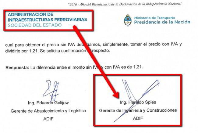 ACÁ EL “PASAJERO CASUAL” SPIES, GERENTE DE INGENIERÍA Y CONSTRUCCIONES. JUNTO A SU JEFE Y PRESIDENTE A ADIF, GUILLERMO FIAD ANUNCIANDO OBRAS FERROVIARIAS.