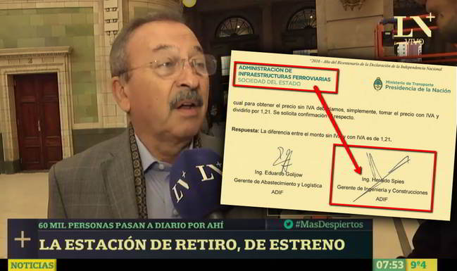 Heraldo y Guillermo, presentados como transeúntes casuales y usuarios del servicio, son en realidad el Ingeniero Heraldo Santiago Spies y el Ingeniero Guillermo Puentes, dos funcionarios públicos que trabajan en ADIF, la compañía del Estado Argentino responsable por la construcción y el desarrollo de la infraestructura ferroviaria del país y quienes licitaron y adjudicaron las reformas que tanto alaban.