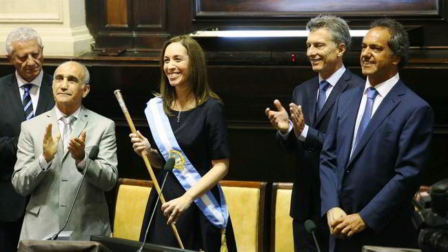 MARÍA EUGENIA VIDAL SE CONVIRTIÓ EN GOBERNADORA DE LA PROVINCIA DE BUENOS AIRES AL JURAR EN LA LEGISLATURA PROVINCIAL Y TOMÓ LOS ATRIBUTOS DEL MANDO DEL GOBERNADOR SALIENTE DANIEL SCIOLI, EN UNA CEREMONIA DE LA QUE PARTICIPÓ EL PRESIDENTE ELECTO MAURICIO MACRI.