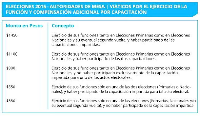 El tercero, por $ 900, es para los que cumplan como autoridades en las PASO y en las generales pero hayan asistido a una sola de las capacitaciones.