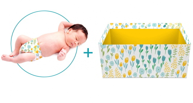 Her gift — a cardboard box where the baby can sleep for his first six months — came loaded with swaddles, a first-aid kit, a rubber duck thermometer to test water temperature, diapers, and tea and sanitary pads for her.