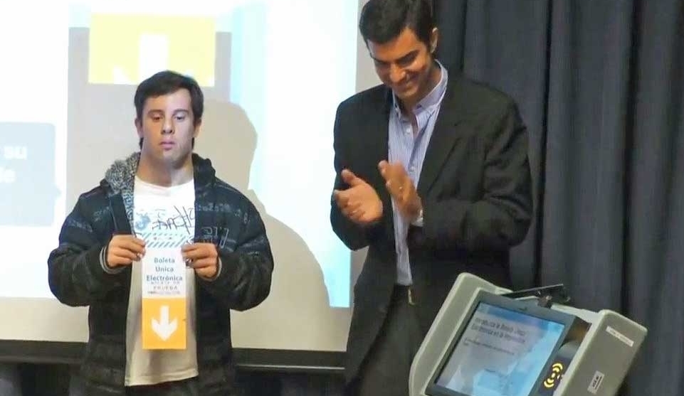 Urtubey utilizó a un joven con síndrome de Down para mostrar la «facilidad de uso» del voto electrónico