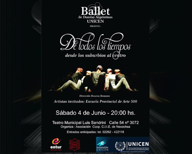 El próximo sábado 4 de junio a las 20:00 horas se presentará el Ballet de Danzas Argentinas de la UNICEN en el Teatro Municipal. El evento, organizado por la Asociación Cooperadora del CIIE, ha sido incluido en la Ruta del Tango . La entrada cuesta 50 $.