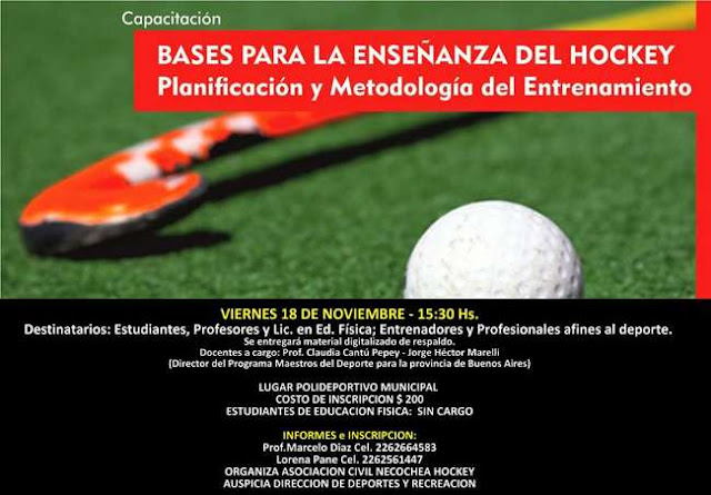 La misma, se denomina “Bases para la enseñanza del hockey”, la cual es organizada por la “Asociación Civil Necochea Hockey” y contará con el auspicio de la Dirección de Deportes y Recreación de la comuna, a cargo del Prof. Miguel Arana.