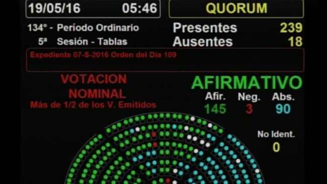 La oposición logró 147 votos a favor del proyecto. El interbloque de Cambiemos participó de la sesión pero se abstuvo. El jefe de Estado tiene 10 días para oficializar el veto, que ya había sido anunciado