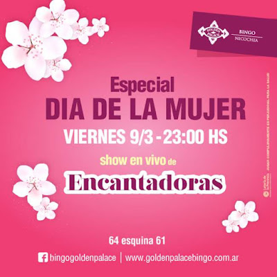 Esta noche, a partir de las 23hs, vení a bailar, cantar y celebrar con tus amigas el Día de Mujer en Bingo Golden Palace.