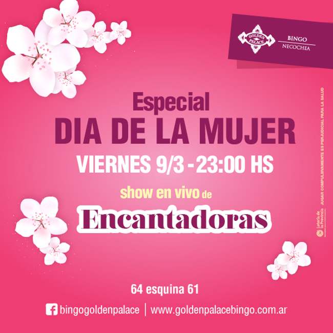 Esta noche, a partir de las 23hs, vení a bailar, cantar y celebrar con tus amigas el Día de Mujer en Bingo Golden Palace.