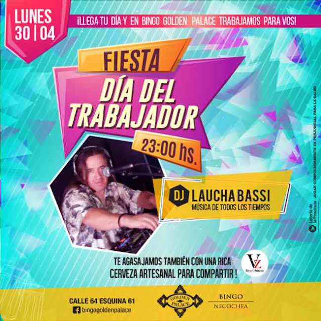 Este lunes a partir de las 23:00hs no podes perderte lo que en Bingo Golden Palace tenemos preparado para vos, te invitamos a disfrutar de UNA VERDADERA FIESTA con la participación en vivo del DJ Laucha Bassi.