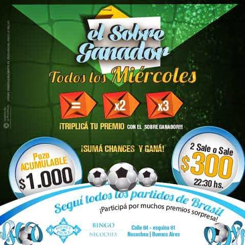 Cabe destacar que también se contará con los tradicionales sorteos de la Promo “El Sobre Ganador Edición Especial Brasil”, donde se pondrá en juego el sorteo del pozo “acumulado” que actualmente se encuentra en $2.000 en efectivo. Previo al sorteo del pozo acumulado, a las 22.30 hs, se realizarán 2 sorteos modalidad “sale o sale” de $300 en efectivo, otorgando la posibilidad de “mantener”, “duplicar” o “triplicar” el valor a través de la elección de “el sobre ganador”. Además, la promo ofrece la posibilidad de ganar atractivos premios tematizados al Mundial, con solo responder de manera correcta los resultados de 2 partidos previamente jugados en dicho campeonato.