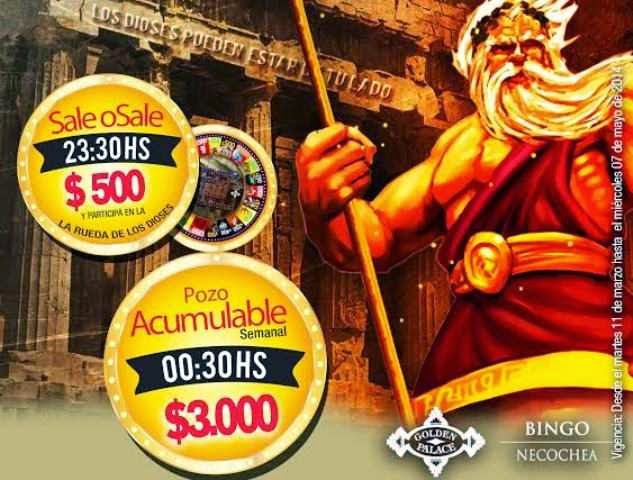 Necochea, 26 de Agosto del 2014.- HOY Martes 26 de Agosto a partir de las 23.30 hs Bingo Golden Palace se prepara para una nueva noche de promo “La Batalla del Imperio Griego”, donde todas las semanas el público tiene la posibilidad de participar por importantes premios en efectivo, entre sorteos modalidad “sale o sale” y “acumulable”.