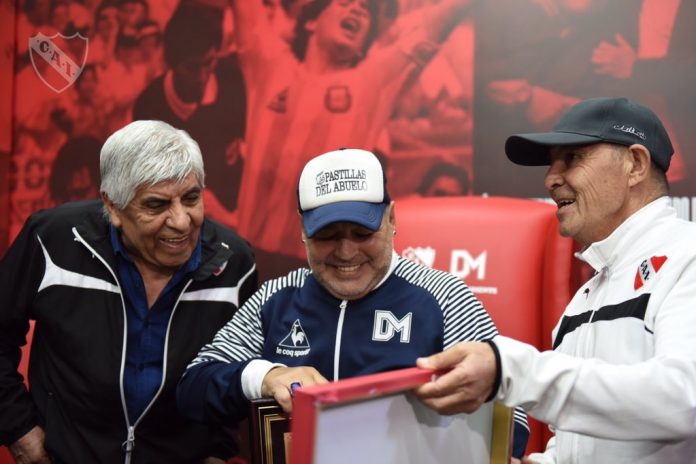 En el día de ayer, al llegar al Estadio de Independiente, Diego Armando Maradona fue homenajeado por las autoridades del rojo. En el sencillo acto, el presidente de la institución de Avellaneda, Hugo Moyano, le entregó una plaqueta, y el máximo ídolo de la institución, Ricardo Bochini, le entregó a Diego un cuadro que fue pintado por el artista plástico loberense Isaís Torres.