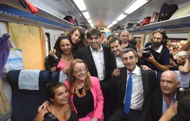 El Director Ejecutivo de la ANSES, Diego Bossio; los ministros del Interior y Transporte, Desarrollo Social y Turismo, Florencio Randazzo, Alicia Kirchner y Enrique Meyer, respectivamente, y el Presidente de Aerolíneas Argentinas, Mariano Recalde, presentaron hoy el programa Trenes por más inclusión, cuyo objetivo es fomentar la inclusión a través del uso del transporte público ferroviario en actividades de recreación, turismo y desarrollo cultural.