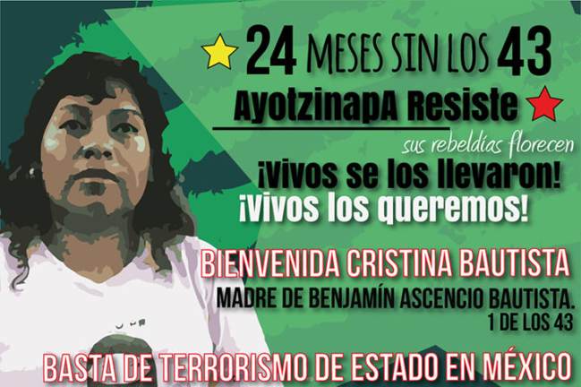 ¡24 meses sin los 43 ¡ayotzinapa resiste! ¡Bienvenida a la Argentina Cristina Bautista! Madre de Benjamín Ascencio Bautista, 1 de los 43