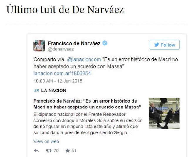 «Fue un error histórico de Macri no haber aceptado un acuerdo con Massa», fue su último y sugestivo tuit, el 12 de junio pasado, antes del cierre de listas de candidatos para las PASO del 9 de agosto.