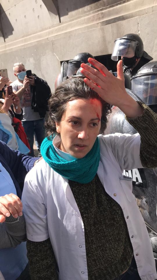 Sin embargo, la manifestación que transcurría pacíficamente desde hace horas, fue respondida violentamente por la Policía de la Ciudad, que impidió la presentación del petitorio con golpes y gases. Al menos tres personas resultaron heridas.
