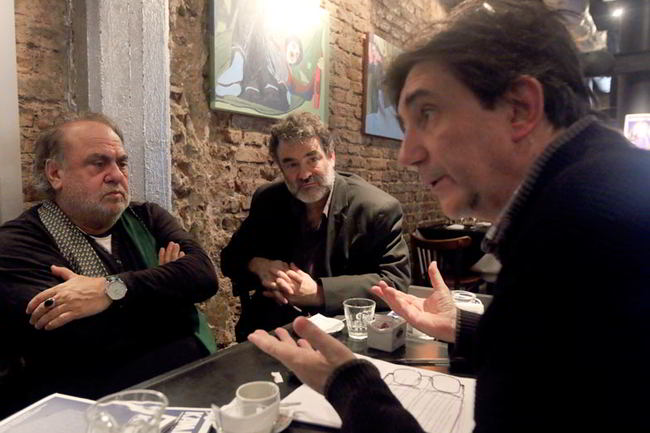 Los tres llegan por tandas, con alguna espera en el medio. Se ubican en una mesa en el fondo del café y librería Clásica y Moderna. Un panel de madera y vidrio los separa de los exhibidores llenos de libros, un entorno que en cierto modo los representa. El último en llegar es Jorge Alemán, psicoanalista radicado en España, ensayista y escritor.