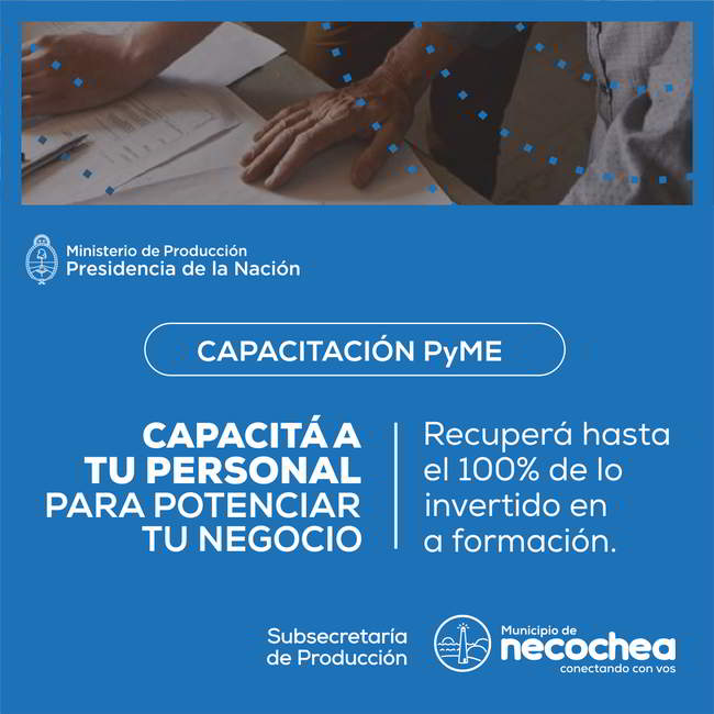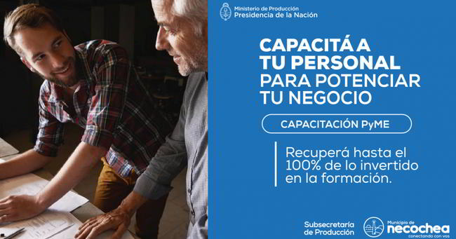 La Subsecretaría de Producción de la Municipalidad de Necochea informa que, hasta el próximo 31 de octubre, se encontrará abierta la convocatoria del programa del Ministerio de Producción nacional que permite a las pequeñas y medianas empresas del país capacitar a su personal recuperando hasta el 100% de lo invertido.