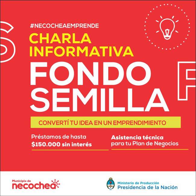 Luego de que el intendente municipal, Dr. Facundo López, firmara el convenio con el Ministerio de Producción nacional que convirtió a Necochea en Incubadora, el próximo lunes 29 se brindará una charla teórico práctica en la Escuela de Arte para orientar a los interesados sobre su aplicación a Fondo Semilla, programa cuyo objetivo es brindar asistencia financiera y técnica a emprendedores o empresas nacientes que pretendan poner en marcha un proyecto o desarrollar uno existente.