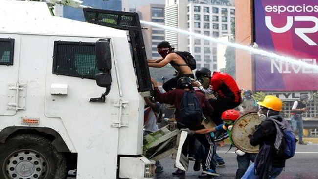 Dirigentes de la derecha venezolana iniciaron el 4 de abril una ola de violencia en el país mediante la convocatoria de protestas de calle, que pese a llamarlas «pacíficas», se caracterizan por grupos de choque que usan armas de fuego, armas de fabricación casera (chopos) y bombas molotov.