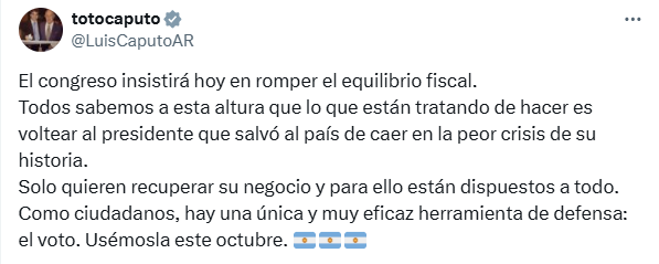 En paralelo a la corrida, el funcionario eligió el terreno de X (ex Twitter) para responder consultas y lanzar mensajes. Allí incluso reconoció que el Tesoro no dispone de los dólares necesarios para los vencimientos inmediatos. “Hace meses que estamos trabajando en diferentes alternativas”, explicó, aunque sin dar precisiones.