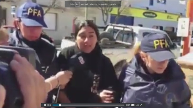 «Iban a buscar elementos y terminan con mi detención», alcanzó a decir Loncopane en un breve intercambio con la prensa, mientras era escoltada por efectivos de la Policía Federal y en el que también hizo saber que la sacaron del interior de su casa en el Lof (comunidad) mapuche.